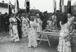 Fahnenweihe 1952 Fahnenmutter Elisabeth Attenberger mit Festdamen