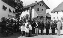 Spritzenweihe mit Pfarrer Mühlbauer rechts außen 1.Bgm. Heinrich Schwarzer und 1.Kommandant Weigelsperger